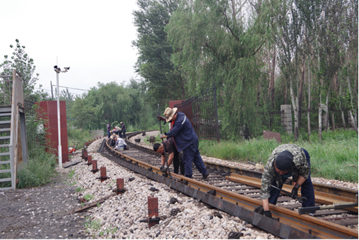 鐵路專線全長1730米,全部維修、維護工作都由工務組十幾名工人完成,此次維修工作,不僅要保證列車通行安全,而且還要節約成本,要讓每根鋼軌、每個螺絲釘都發揮它有效作用。一條鋼軌重達1噸,更換工作全部由人工完成,而此次更換的鋼軌,曲徑彎度特別大,更換難度可想而知,在此困難情況下,工人們表現出極大耐心、細心,用他們嫻熟的技藝,提前半小時出色地完成更換搶修工作,保證了列車正常通行。
